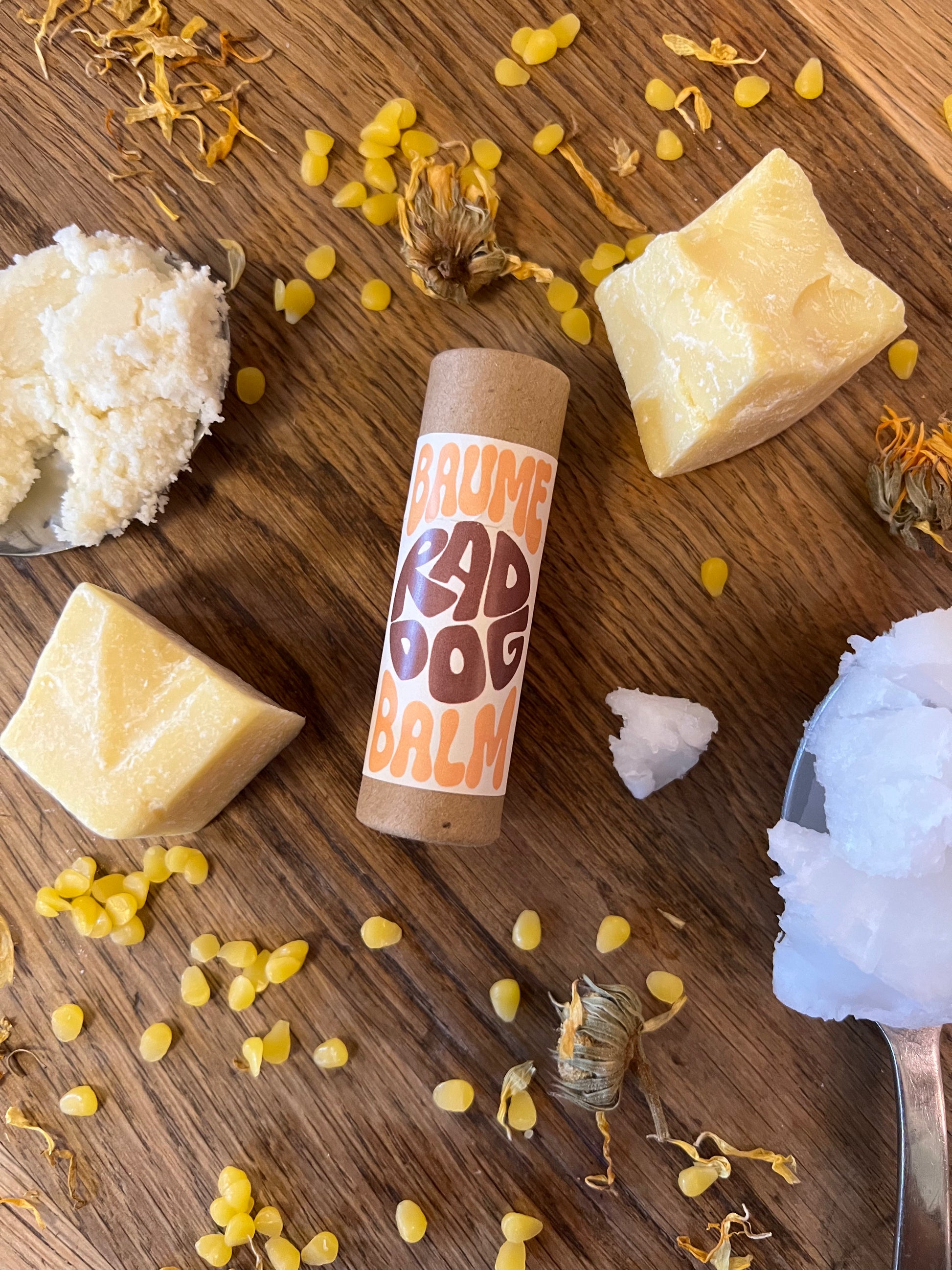 Parce que nous aimons notre planète autant que nos toutous, le baume pour chiens Rad Dog Balm est conditionné dans un tube en carton recyclable avec un autocollant recyclable. <3